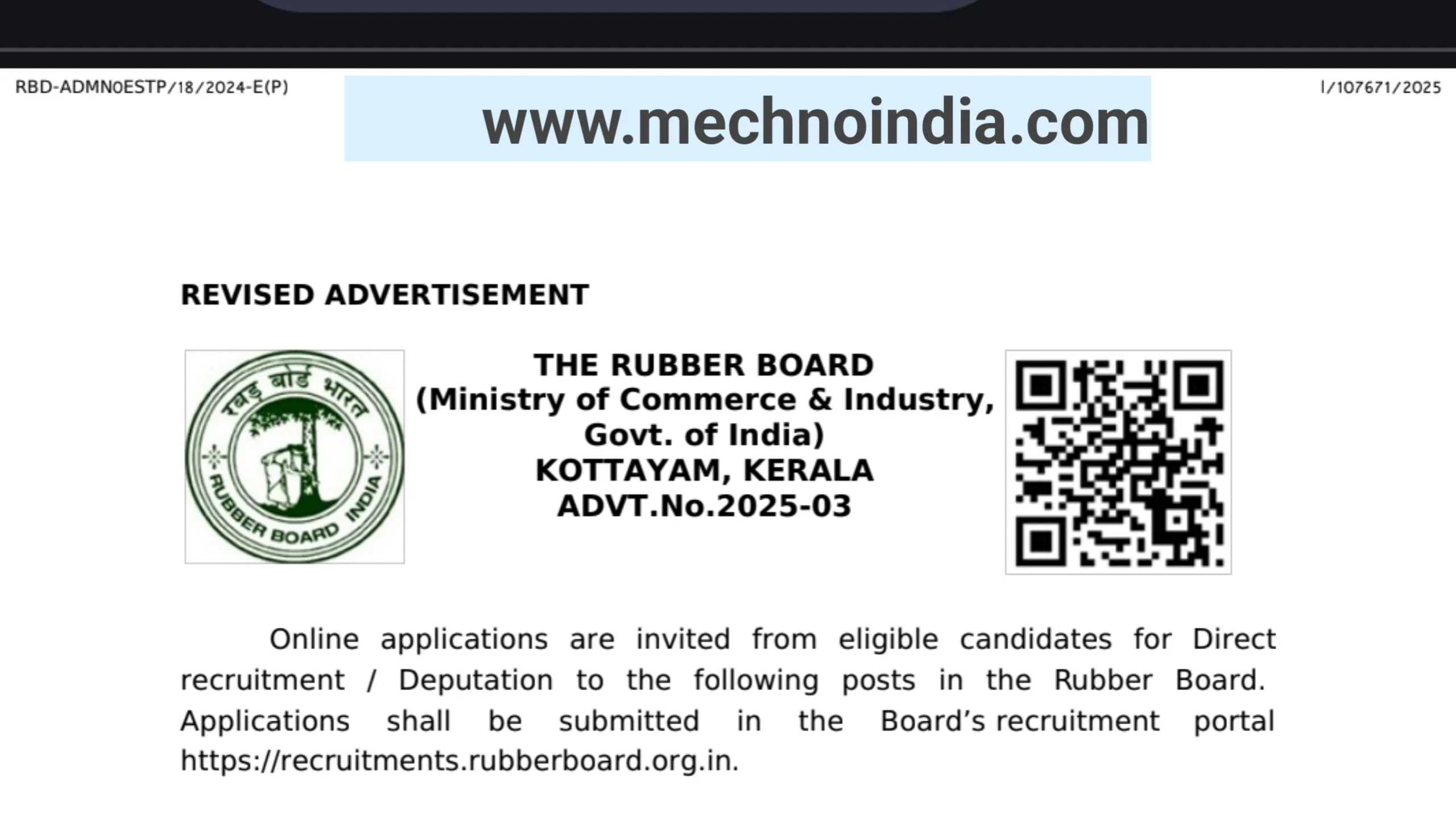 | Organization | Rubber Board (Government of India) |